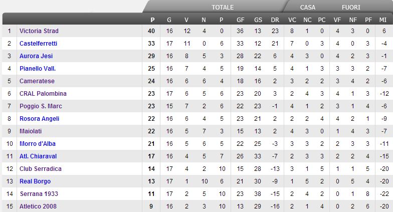 Dopo 16 gare disputate l’obbiettivo sembra più che alla portata di mano per i ragazzi di mister Fabrizi. E’ prima in classifica, e dopo la straripante vittoria per 6-1 contro la Serrana penultima in classifica, (reti di Gagliardini, Coppari Carbone, Carbone, Mazzi, Picirchiani), si ritrova con un vantaggio di ben 7 punti sulla seconda e di 11 sulla terza, con anche una partita da recuperare causa maltempo e neve.