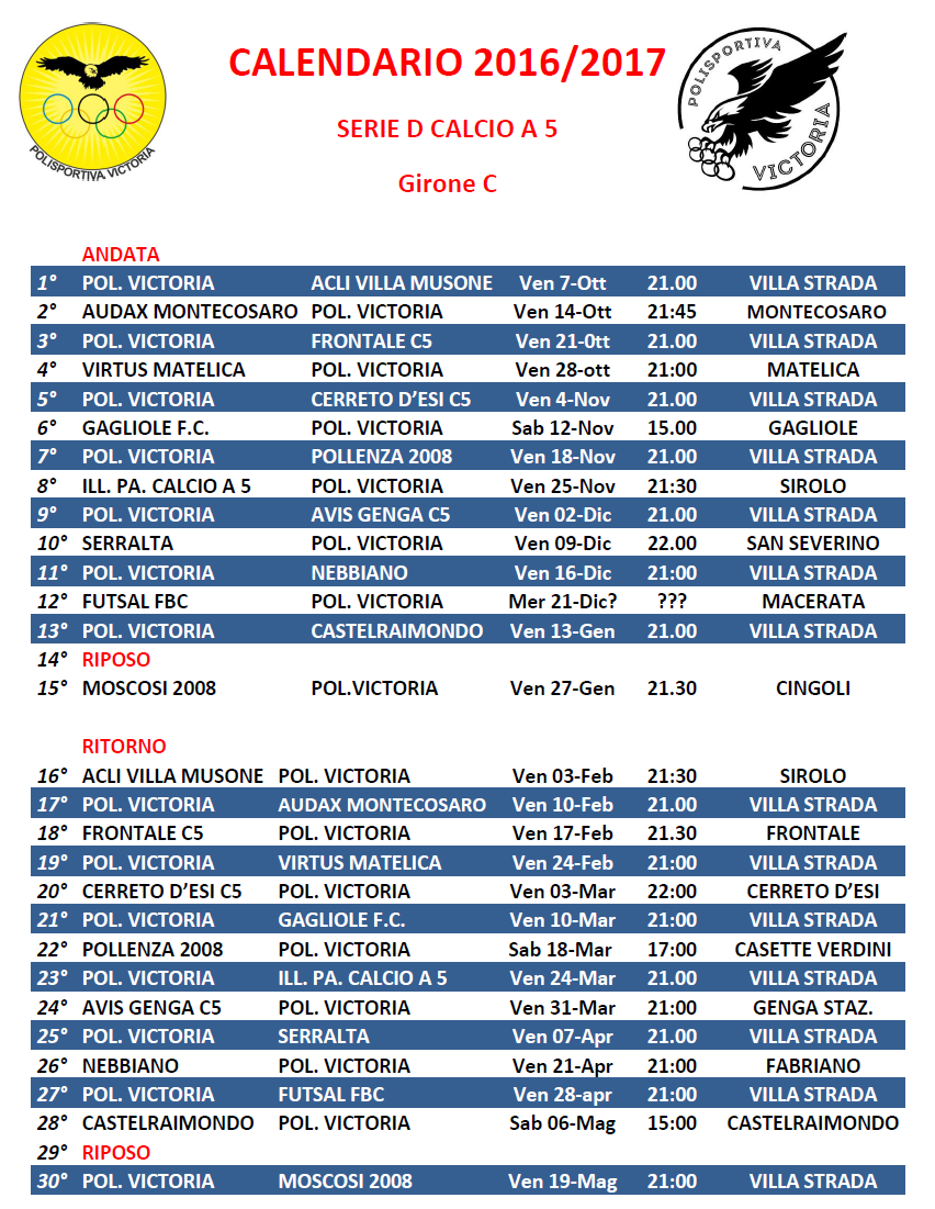 RIPRENDE CON L’8° GIORNATA DI ANDATA COME DA CALENDARIO.