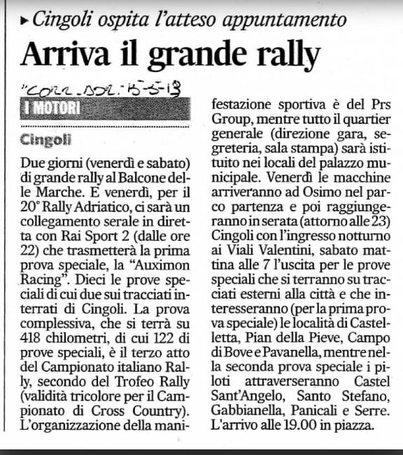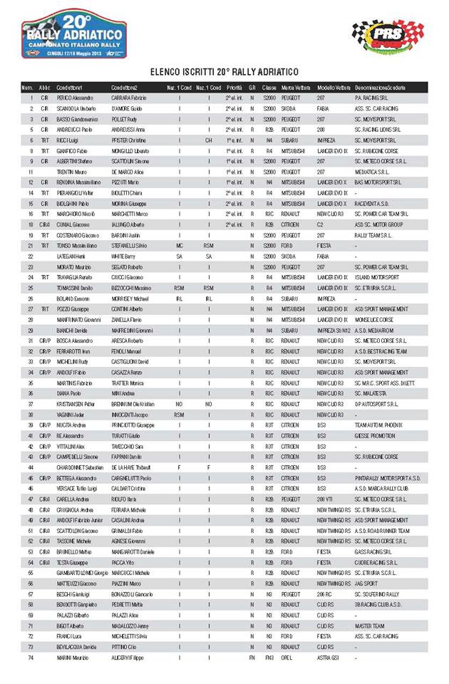 20° RALLY ADRIATICO: PROGRAMMA E TAPPE